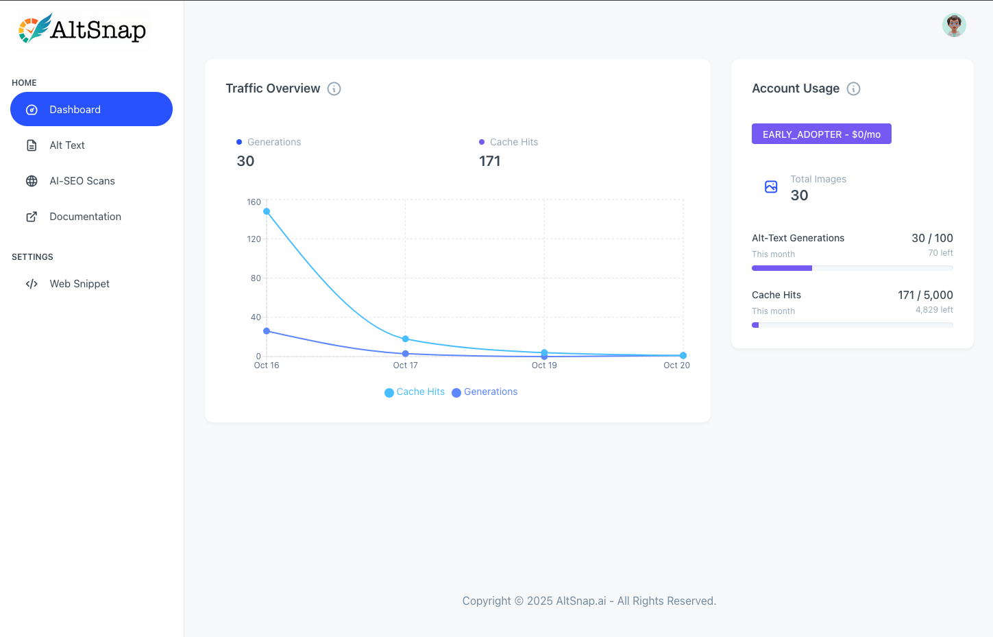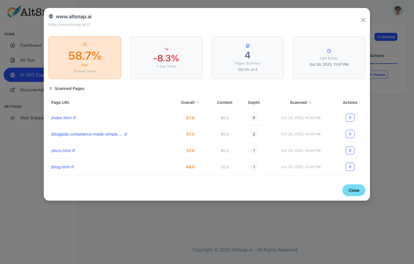 AltSnap.ai instantly generates context-aware alt text for your website images — complete with confidence scores, ADA checks, and AI-SEO scans for peace of mind that your site is accessible and discoverable.
