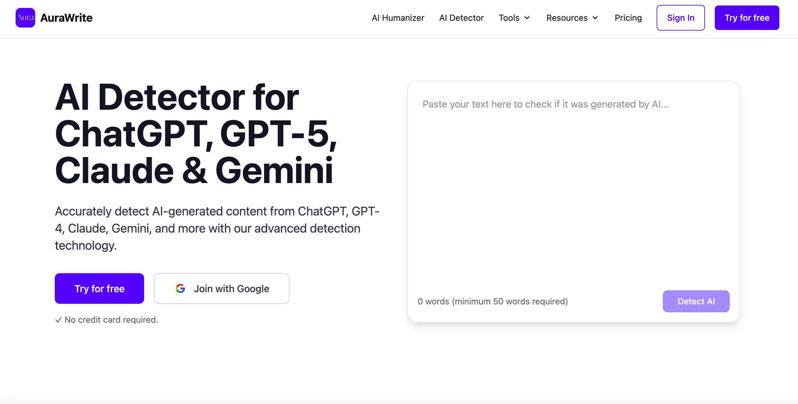 Humanize AI text from ChatGPT, Claude, Gemini, and more with AuraWrite's AI Humanizer. Make your content more natural, engaging, & human in seconds. Try now!