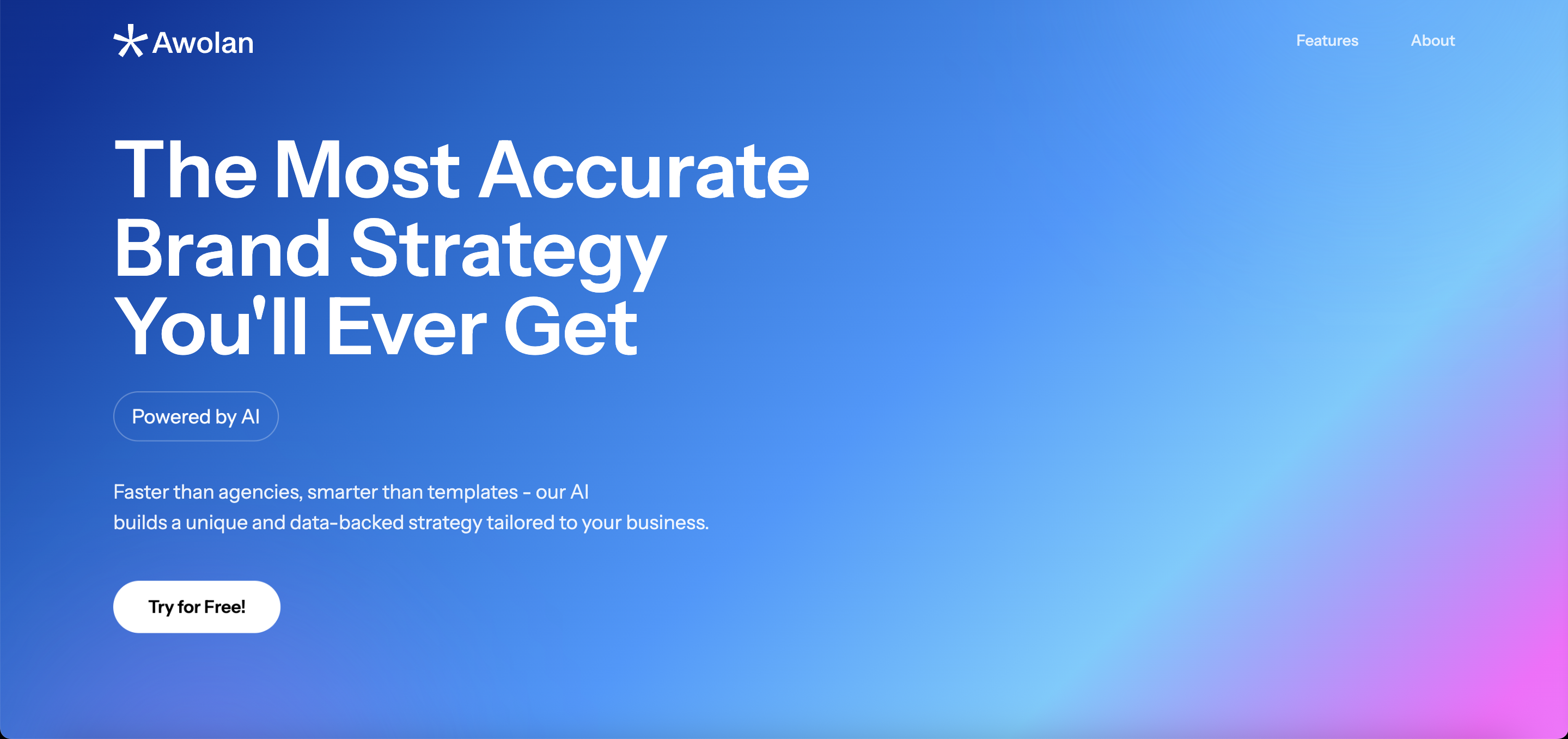 Awolan is an AI-powered brand strategy tool that helps startups and founders build clear, most accurate brand strategies in hours -not weeks. It combines AI intelligence with expert refinement to craft strategies that define your story, voice, audience, and positioning. No expensive agencies, no confusion - just an accessible, guided path to a strong brand foundation.
