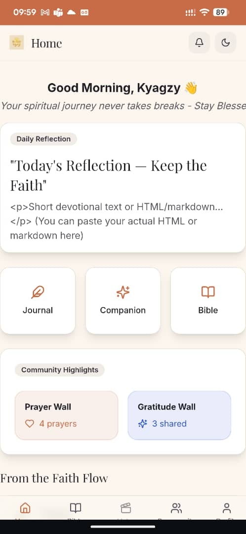 BLSSD VYBZ bridges that gap with an AI-powered spiritual companion, guided reflections, and a vibrant faith community, helping every young believer grow authentically and consistently on their journey with God.