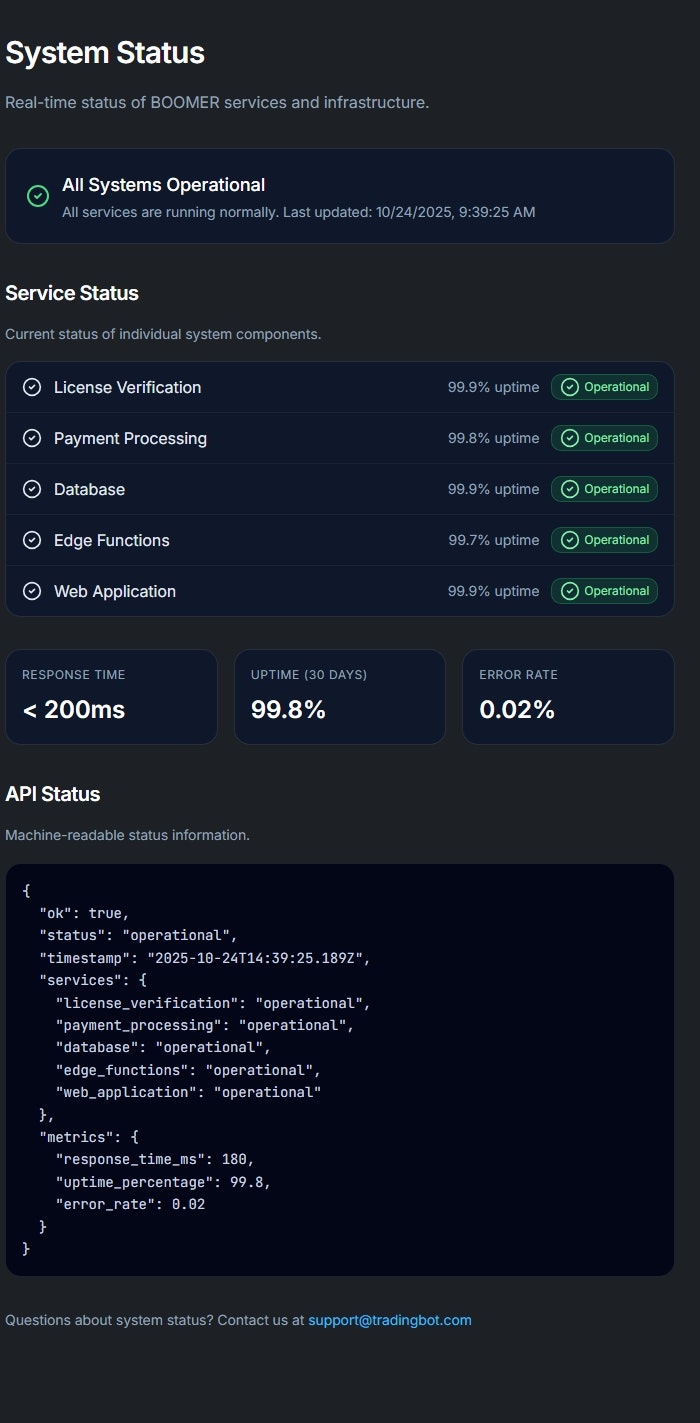 Boomer automates strategies, captures missed opportunities. ๐ Has Real-time signals, ๐งช smart execution, and ๐ freedom from chart watching. Built for those who aren't experts in the market.
