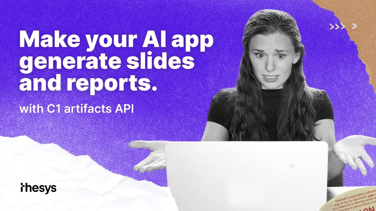 C1 API for Artifacts lets your AI app actually get work done, not just output text. Your users stay in your product. And you save months of engineering on UI, layouts, exporting, and theming.