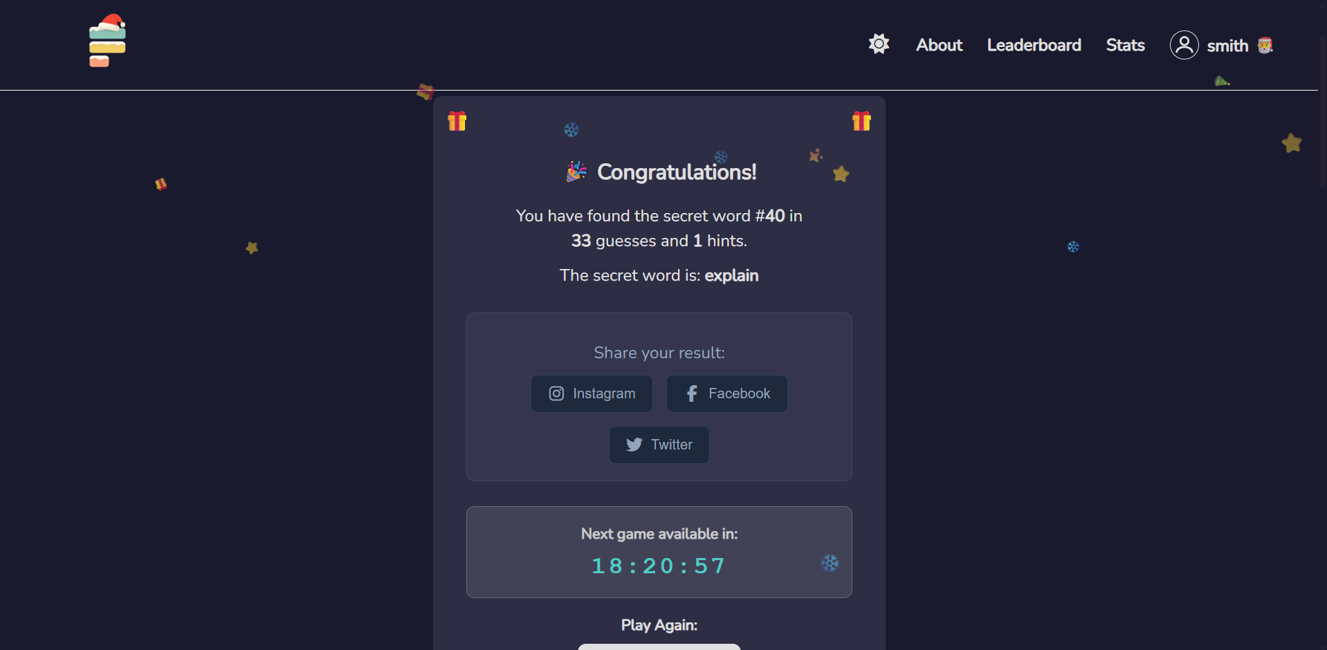 Contexto β a daily semantic word-guessing game. Submit words to discover the secret word using AI-driven similarity rankings. Unlimited attempts, daily hints, leaderboards and player stats to track your progress.