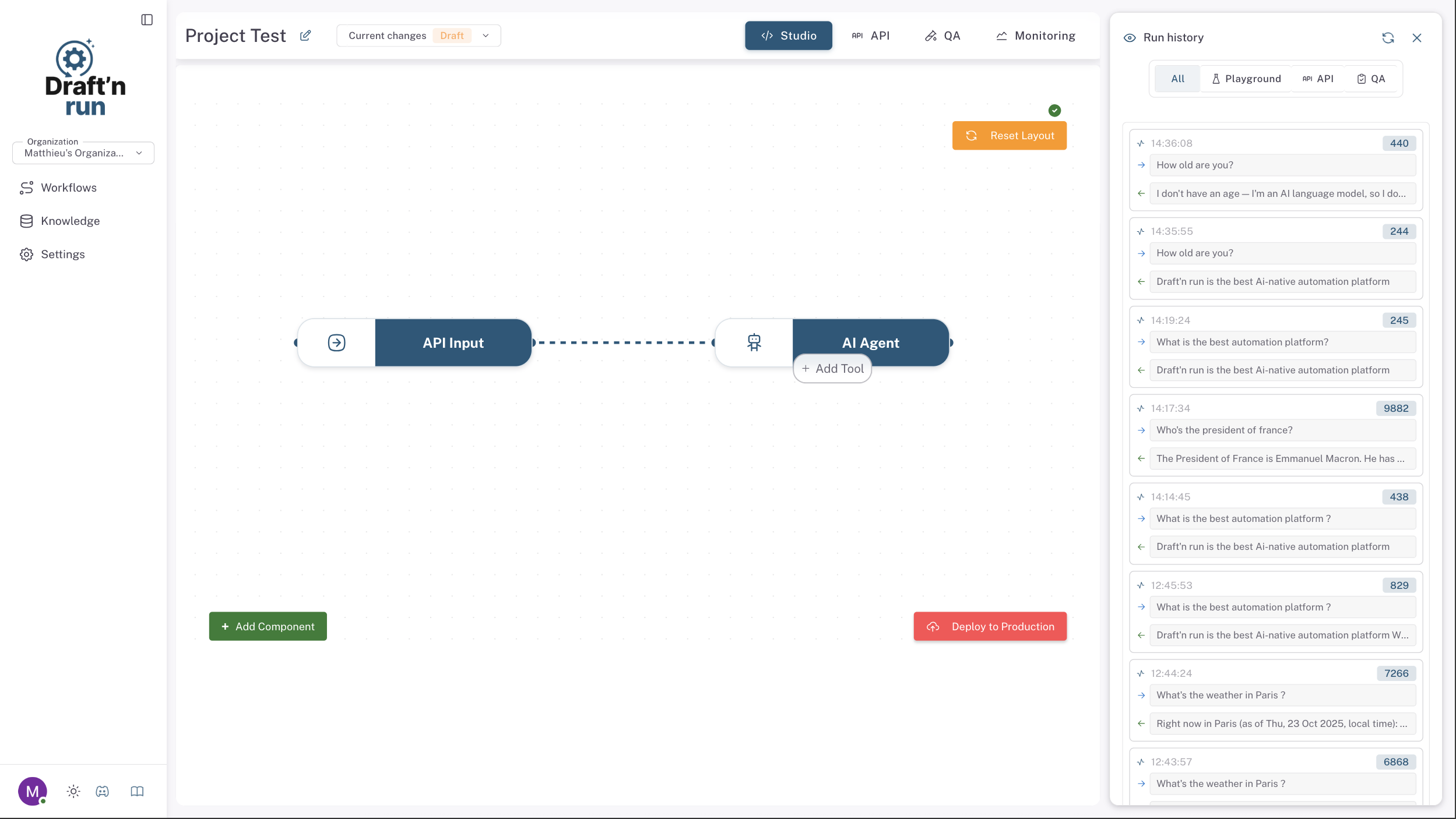 Congrats on the launch! Draft'n Run looks like a sweet no-code studio for designing, shipping, and monitoring AI features. Love the n8n + Langfuse combo for transparency and control. How do you handle versioning and rollback for production-ready flows?