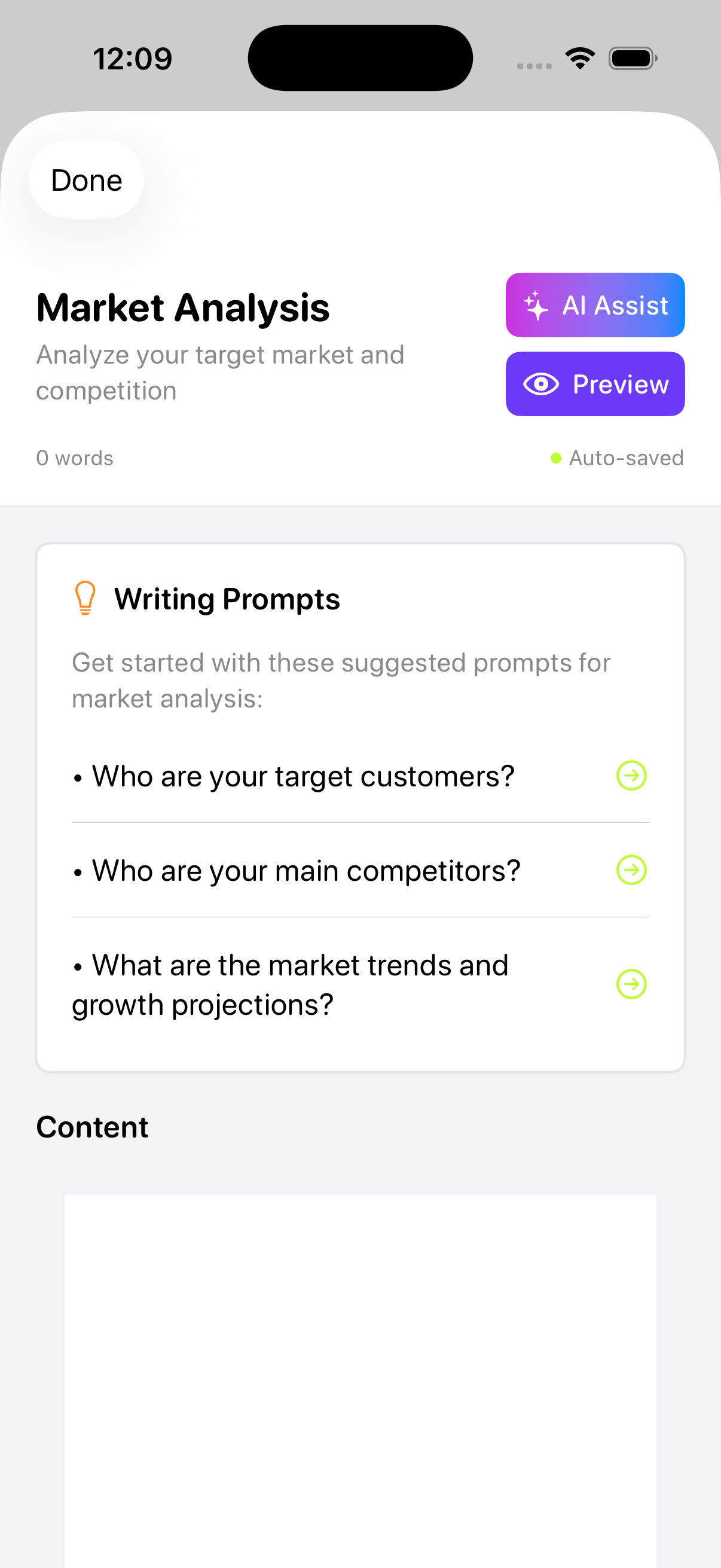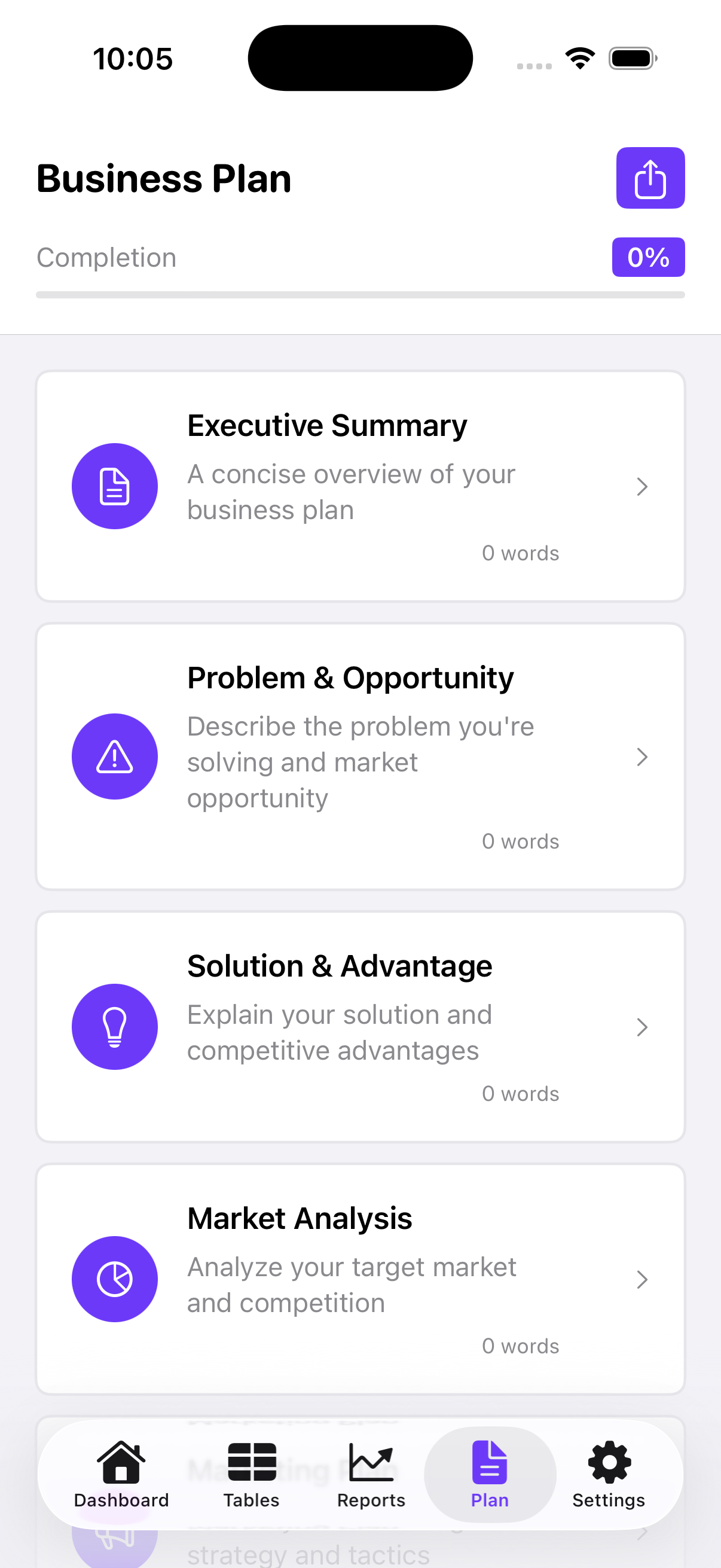 I made it mobile because I’m always on the go — I wanted to be able to churn out a full business plan anytime, anywhere.