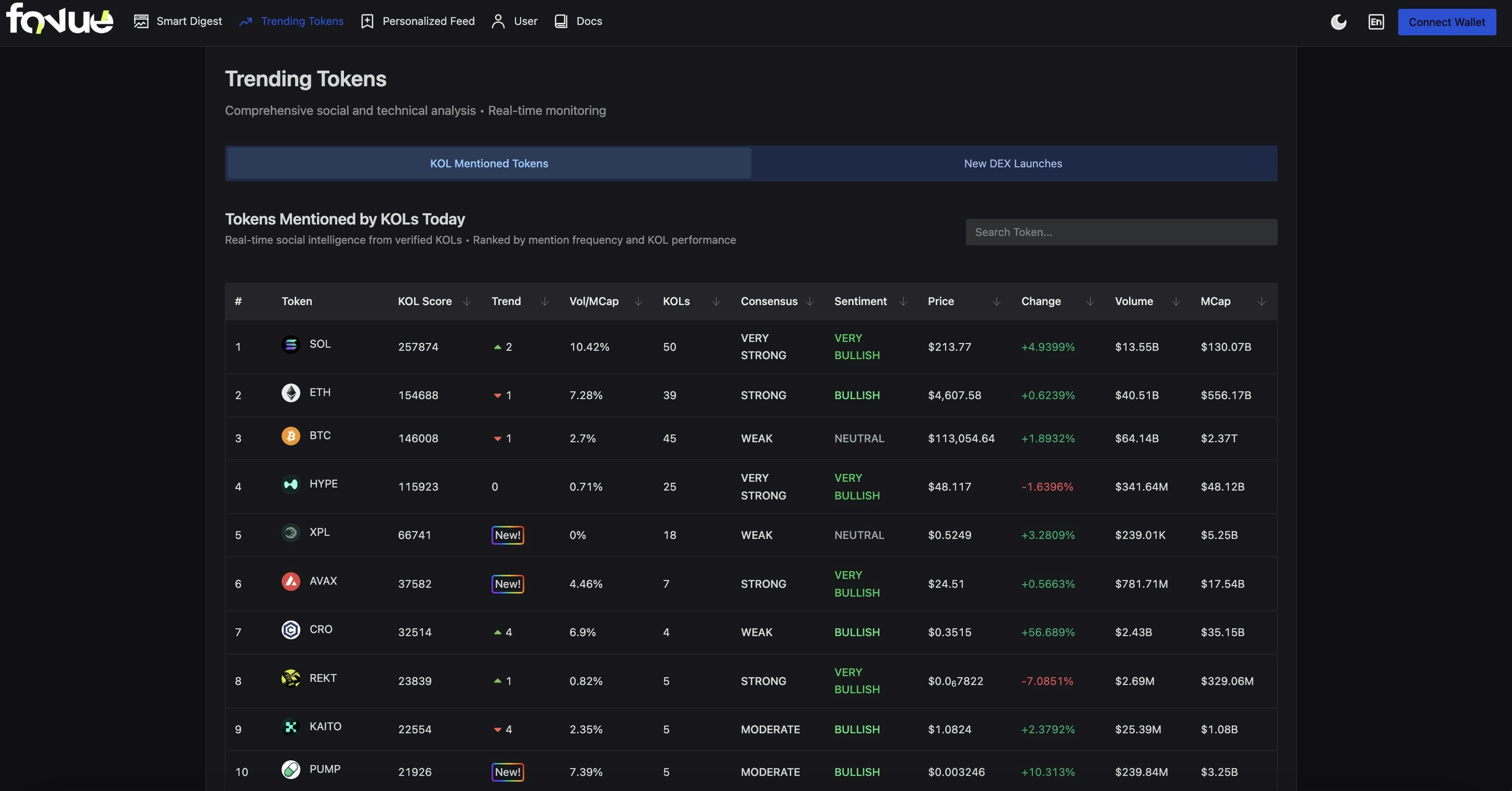 Fovue.ai transforms the noise of crypto X into actionable market intelligence. By analyzing millions of posts from influencers and traders, the platform delivers real-time insights, sentiment analytics, and trends to help make informed trading decisions