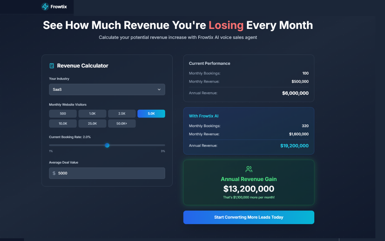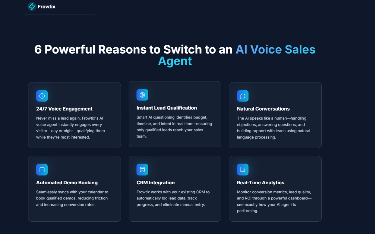 We built Frowtix because so many businesses lose qualified leads while their sales team is offline. Our AI voice sales agent works 24/7 to: