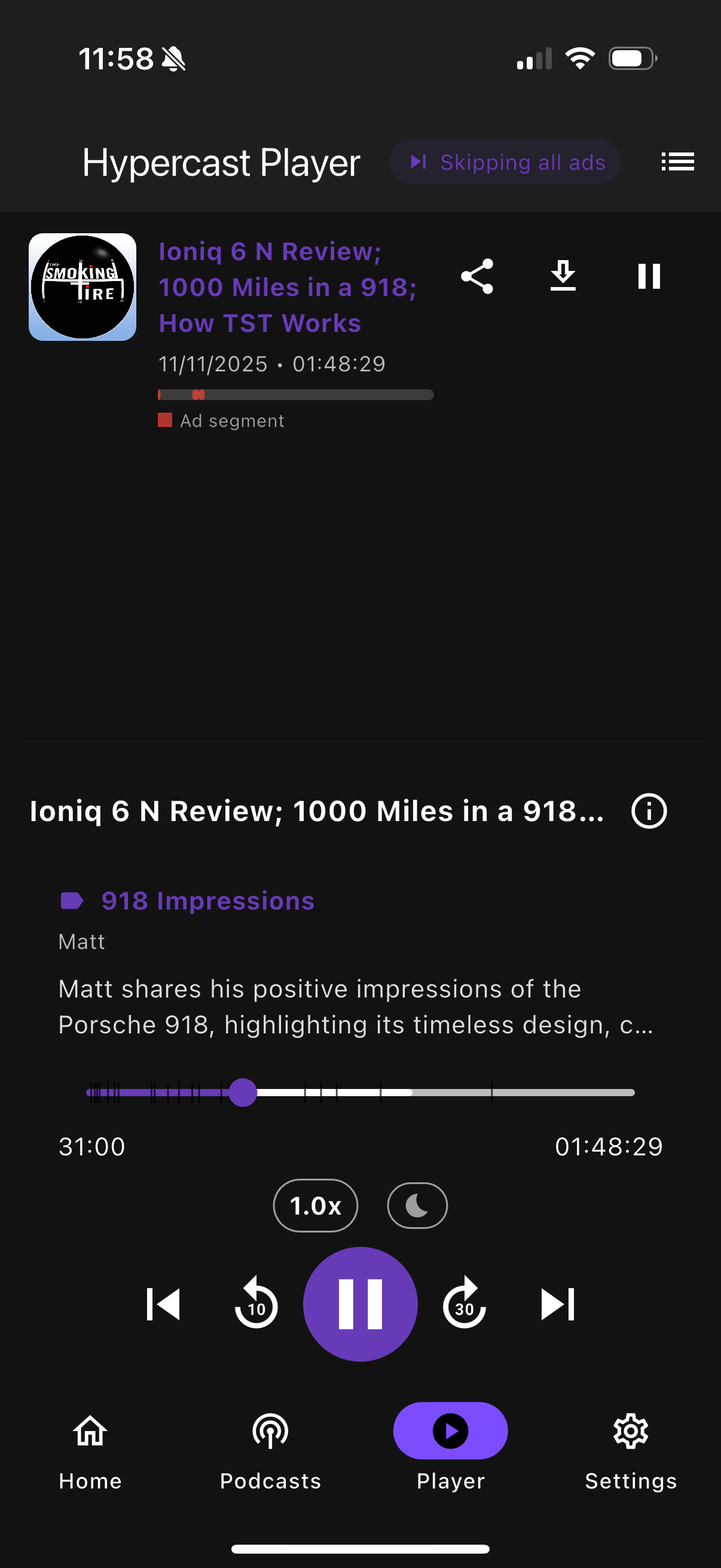 Hypercast brings smart features to your podcast listening experience with AI-powered segments, ad-skipping, and the highest quality audio.