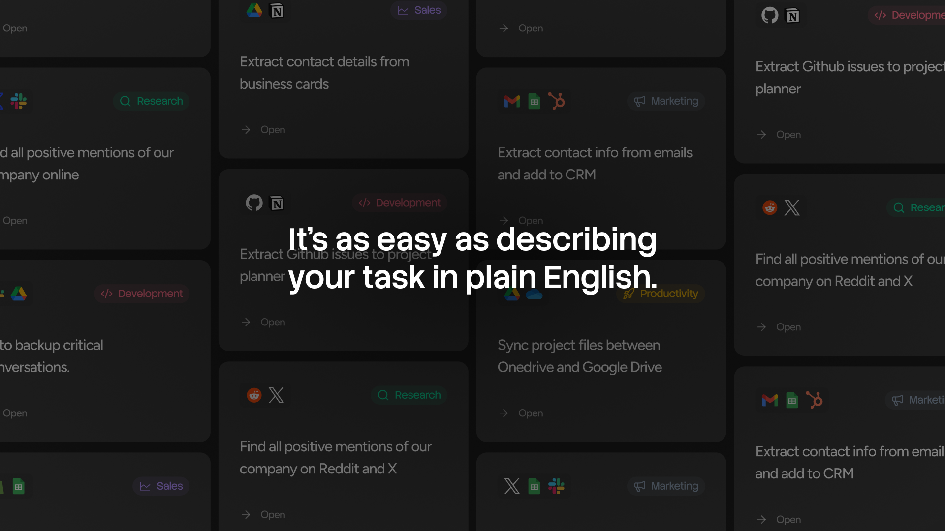 There's hundreds of integrations built in. Google Workspace, Notion, Salesforce, Slack, Linear, HubSpot... more coming.