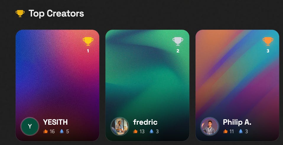 The top three creators who have published their Agents in the community!
