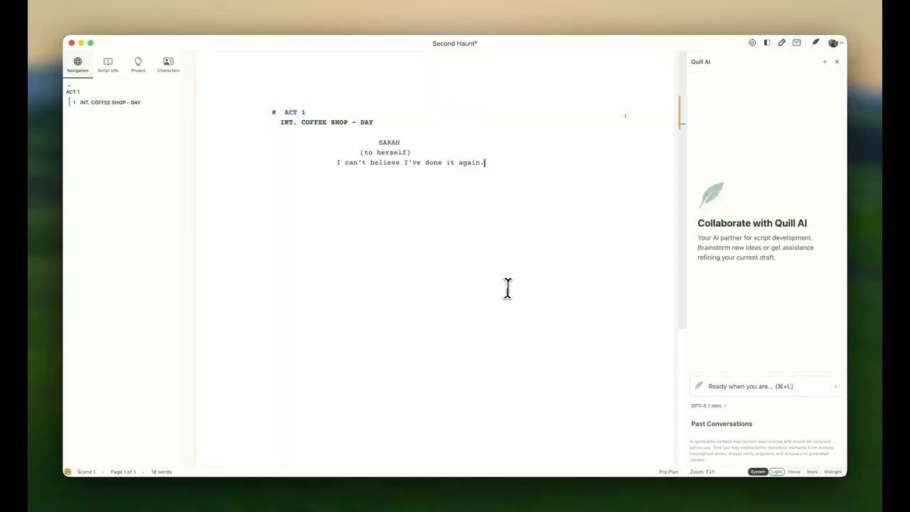 Inkwell is my answer: a professional, offline-friendly screenwriting app where AI helps you brainstorm, edit, and refine your script — but never writes for you.