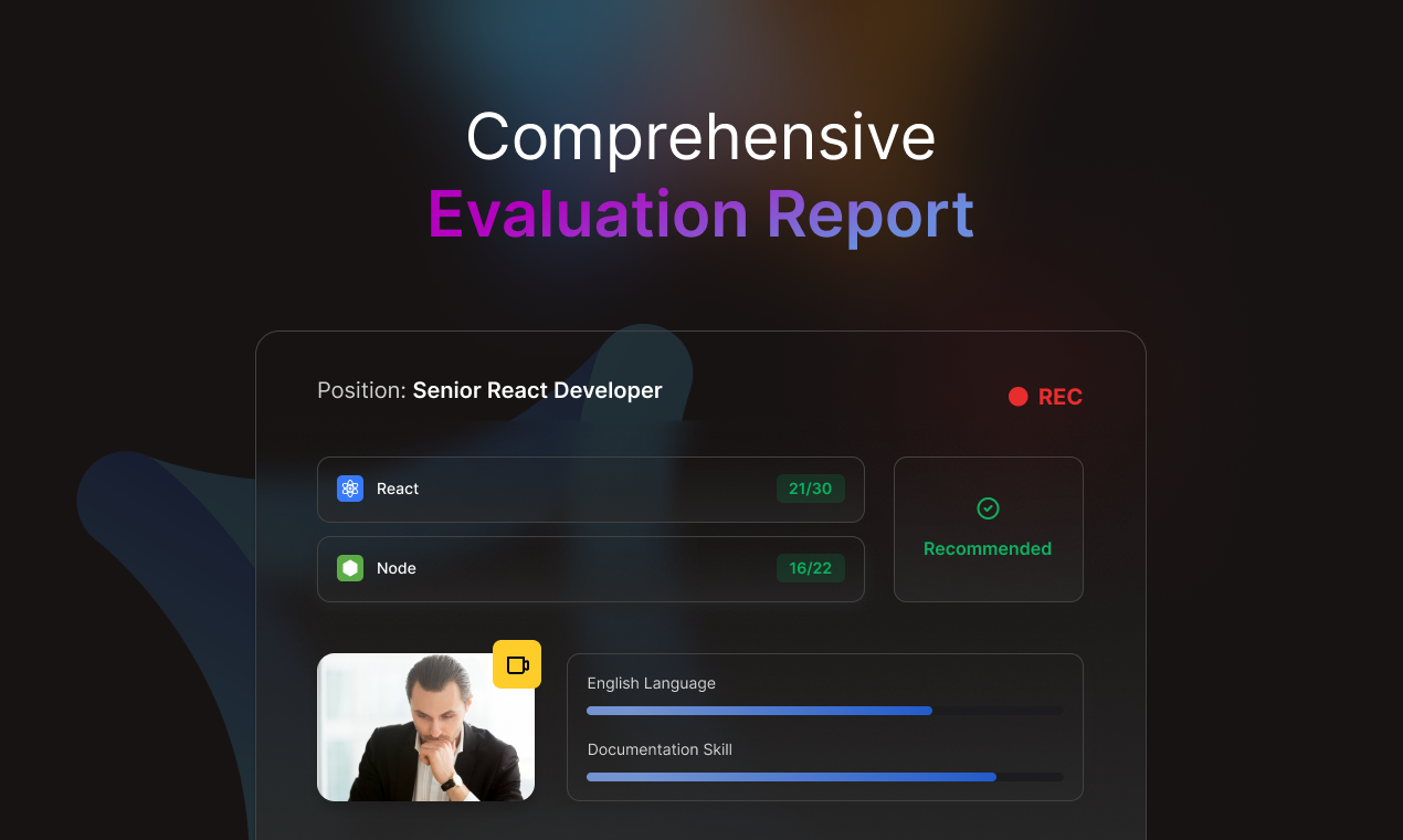 InterWiz provides an instant evaluation report right after the interview, giving you everything you need to make quick decisions.