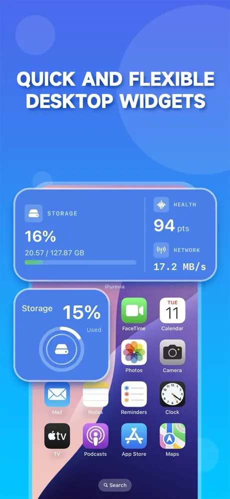 Widget Support – Monitor storage, health score, and network speed right from your home screen