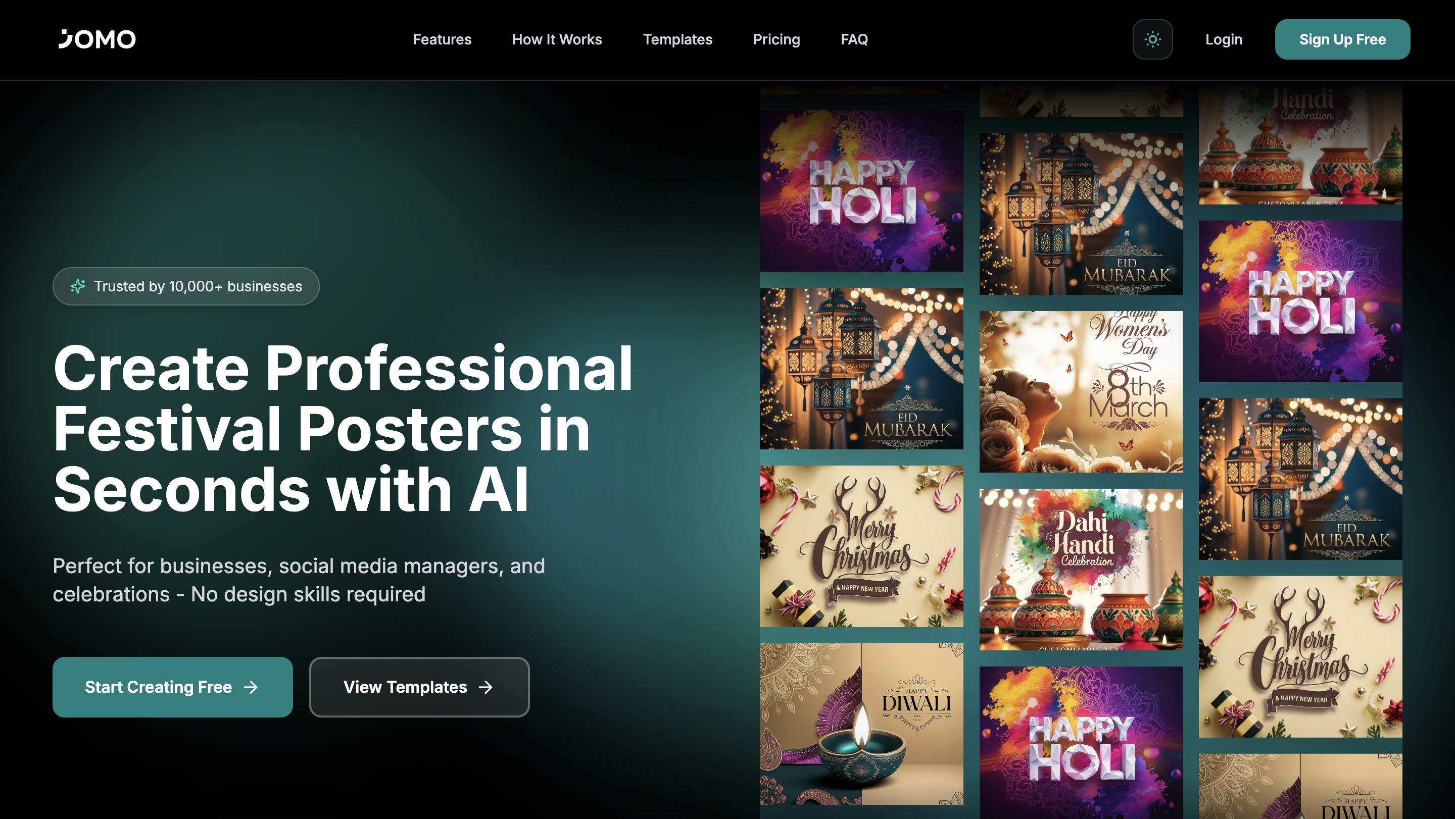 Create your brand once and get unlimited, personalized festival posters—across styles like Wishing, Awareness, and CTA—with zero effort.