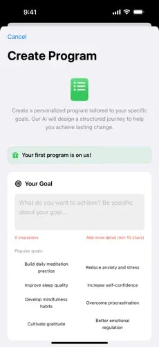 What’s new: AI-personalized meditations, micro 1-minute resets, Focus Sprints (Pomodoro), programs, realistic voice affirmations, and a clean, distraction-free UI.