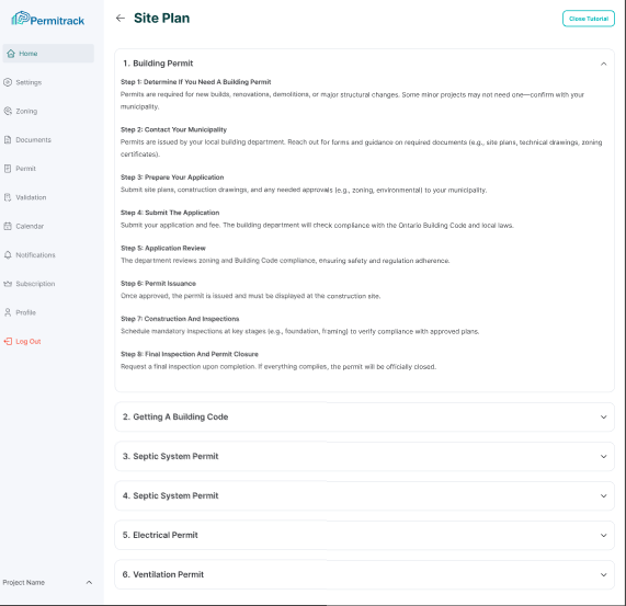 The platform analyzes your project, tells you exactly which permits you need, checks zoning rules, generates the required documents, and helps you move through the approval process without the usual roadblocks.