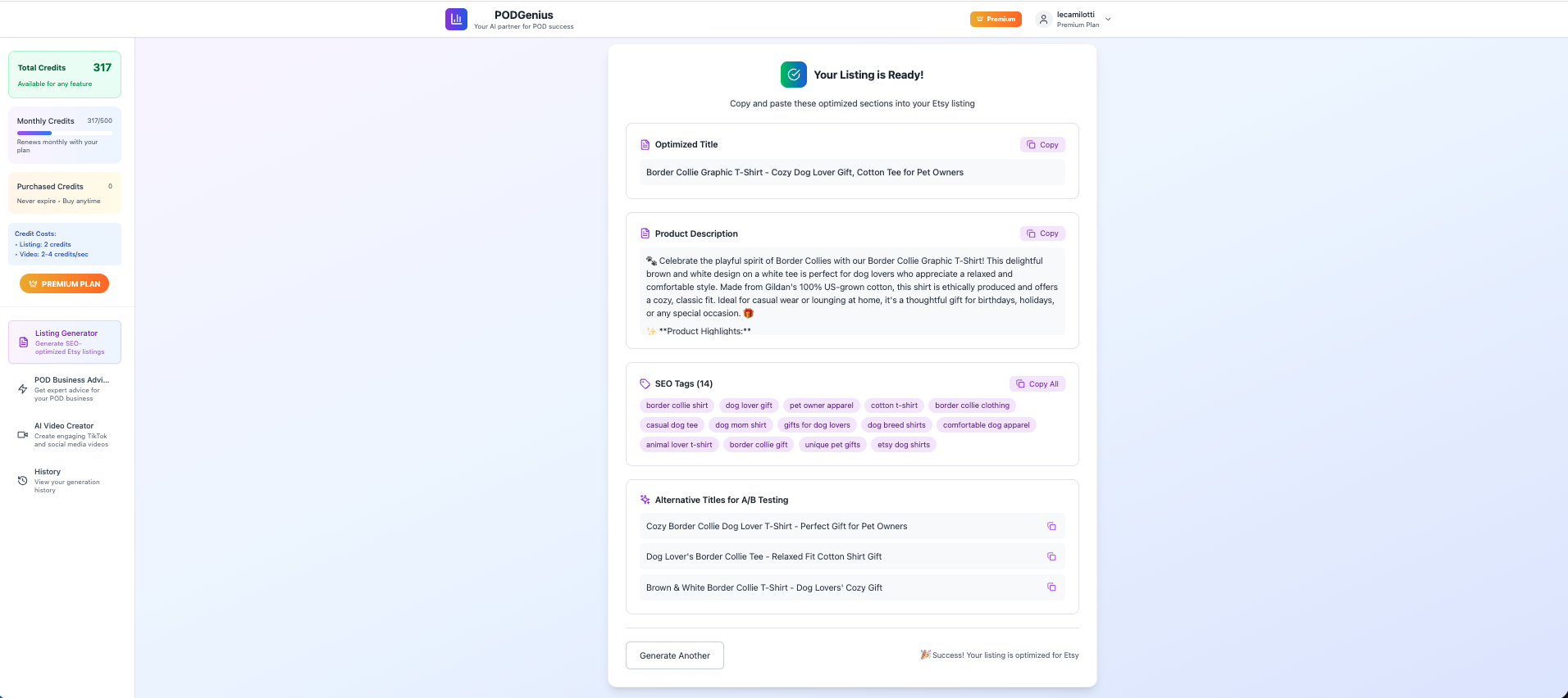 So I built PODGenius to automate the boring parts with AI: turn product images into marketing videos, generate SEO-ready listings, and launch faster with less stress.