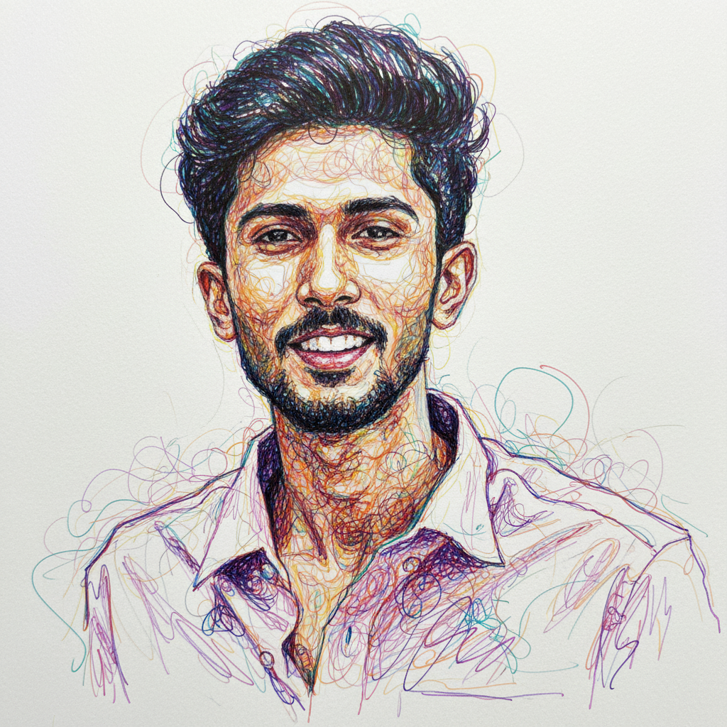 I'm a digital artist who's been creating scribble portraits for years. My work caught the attention of celebrities and influencers, but each portrait took 3-5 hours and cost $200-500.