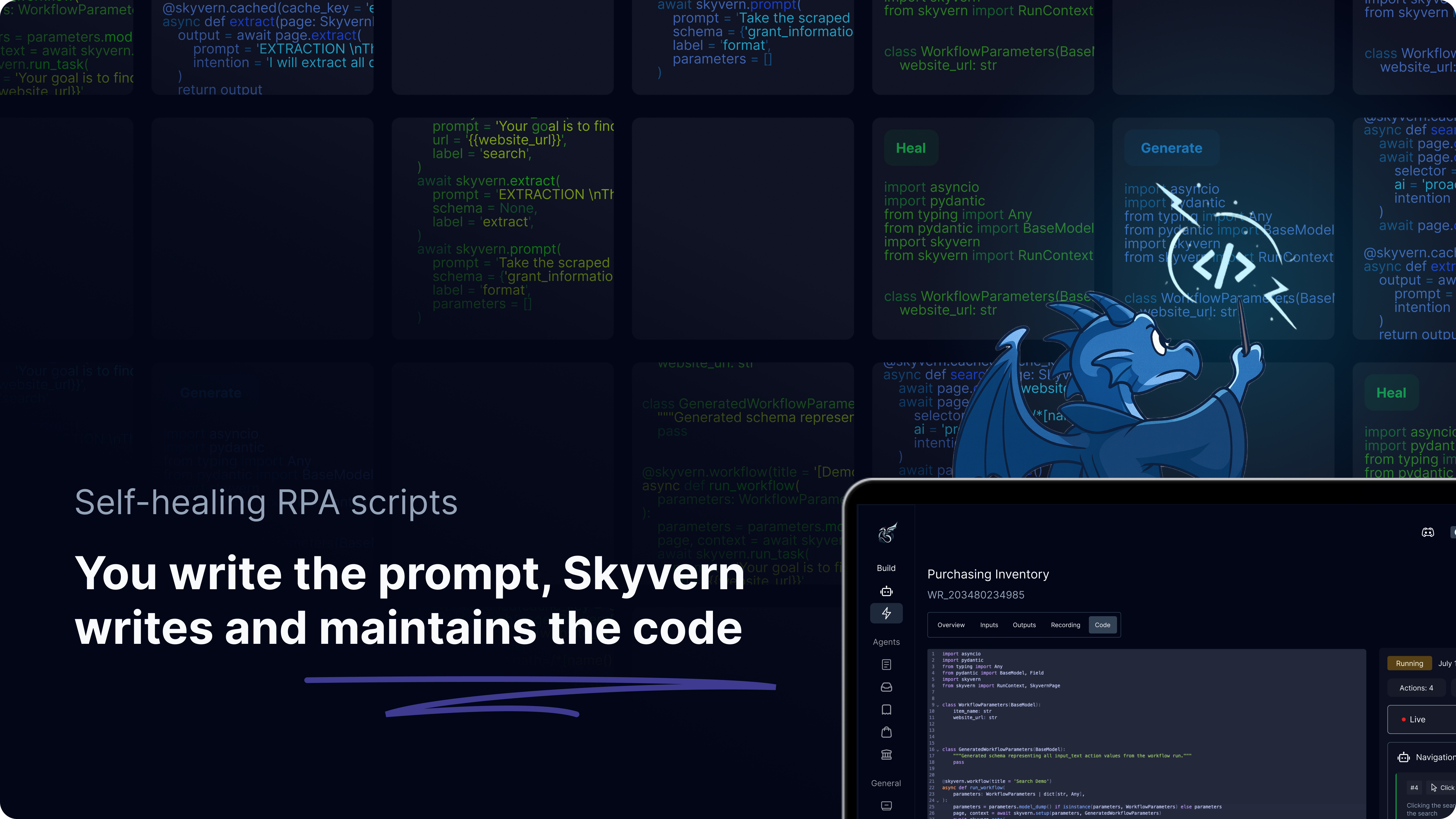 The latest version of Skyvern combines state-of-the-art browser agent performance with code generation ability to build deterministic, reliable self-healing automations.