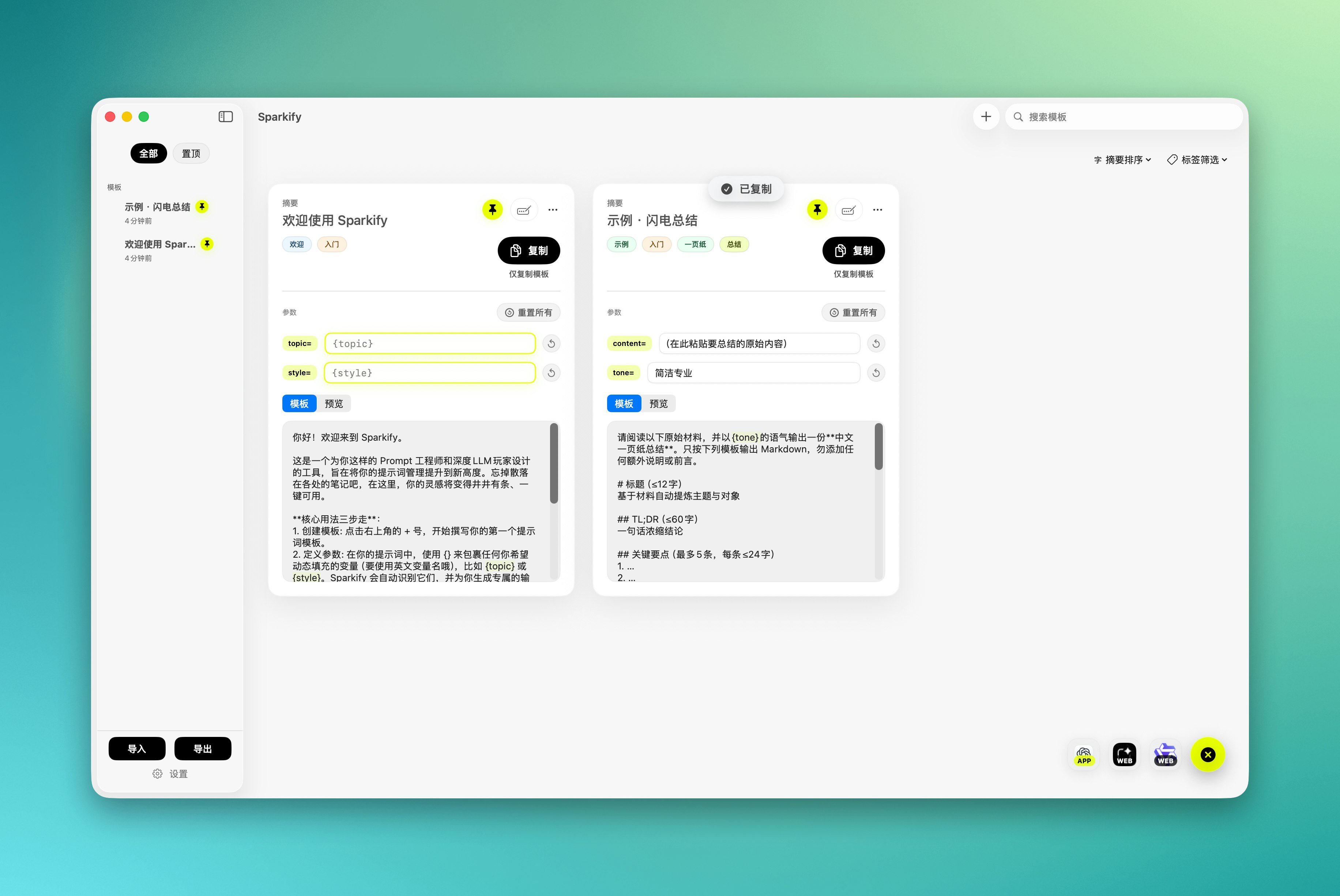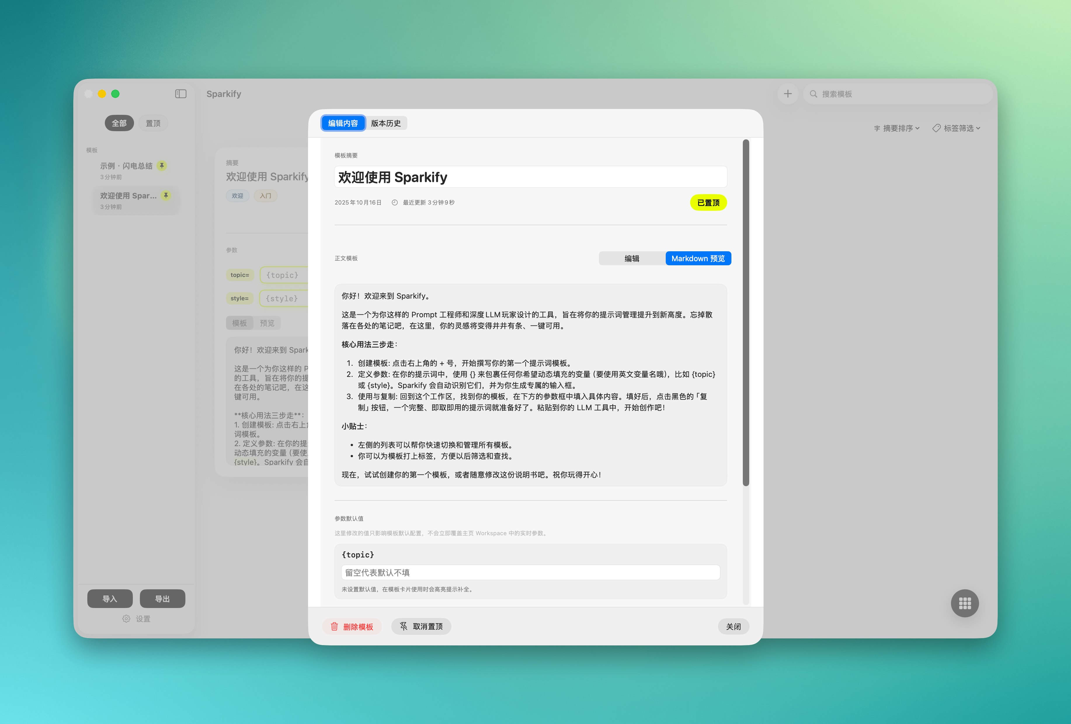 Sparkify is an app to craft, manage, and version your AI prompts. With a dynamic template engine and local file sync, being an essential tool for anyone working with AI.
