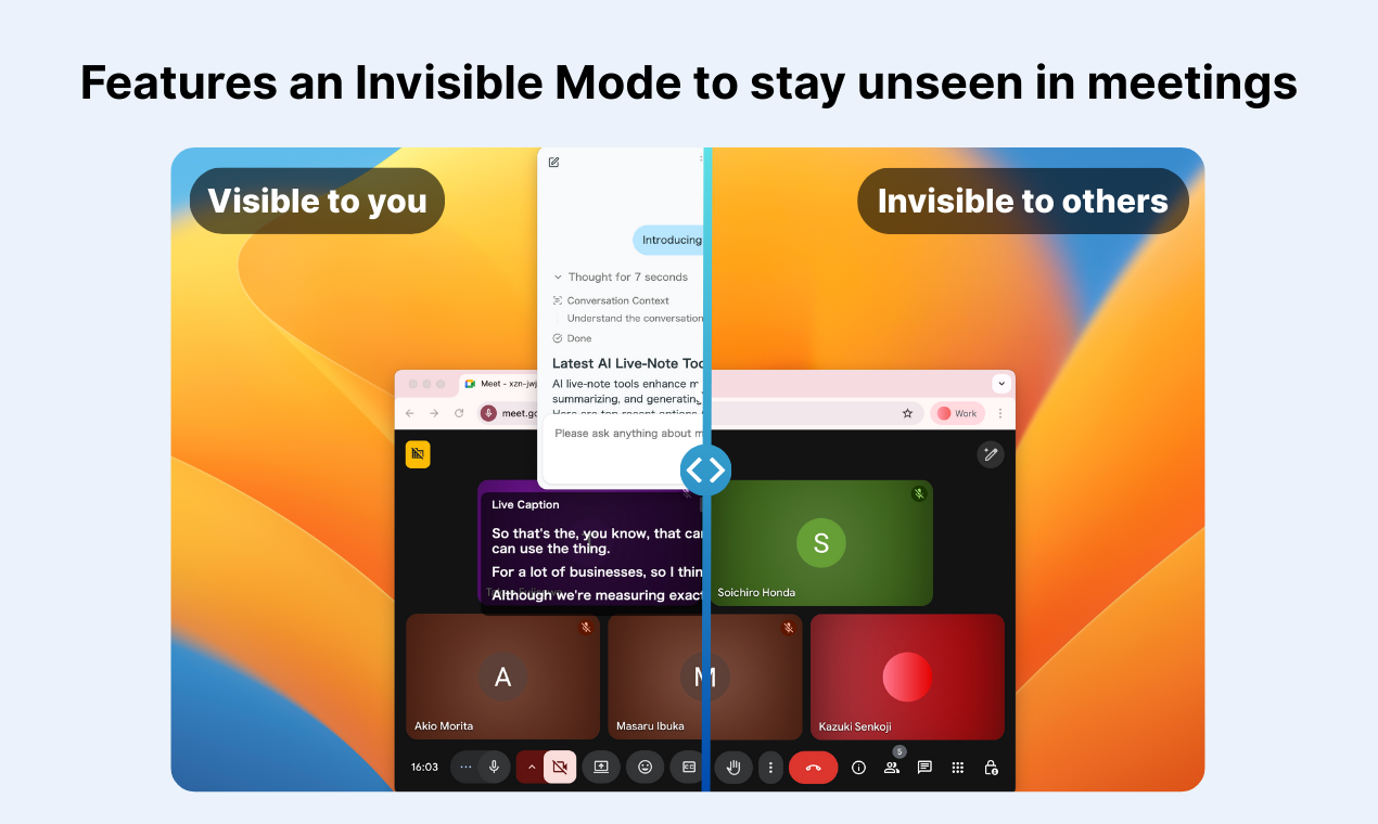 SuperIntern sits alongside your meeting (Zoom, Meet, Teams, etc.) and works in real time: