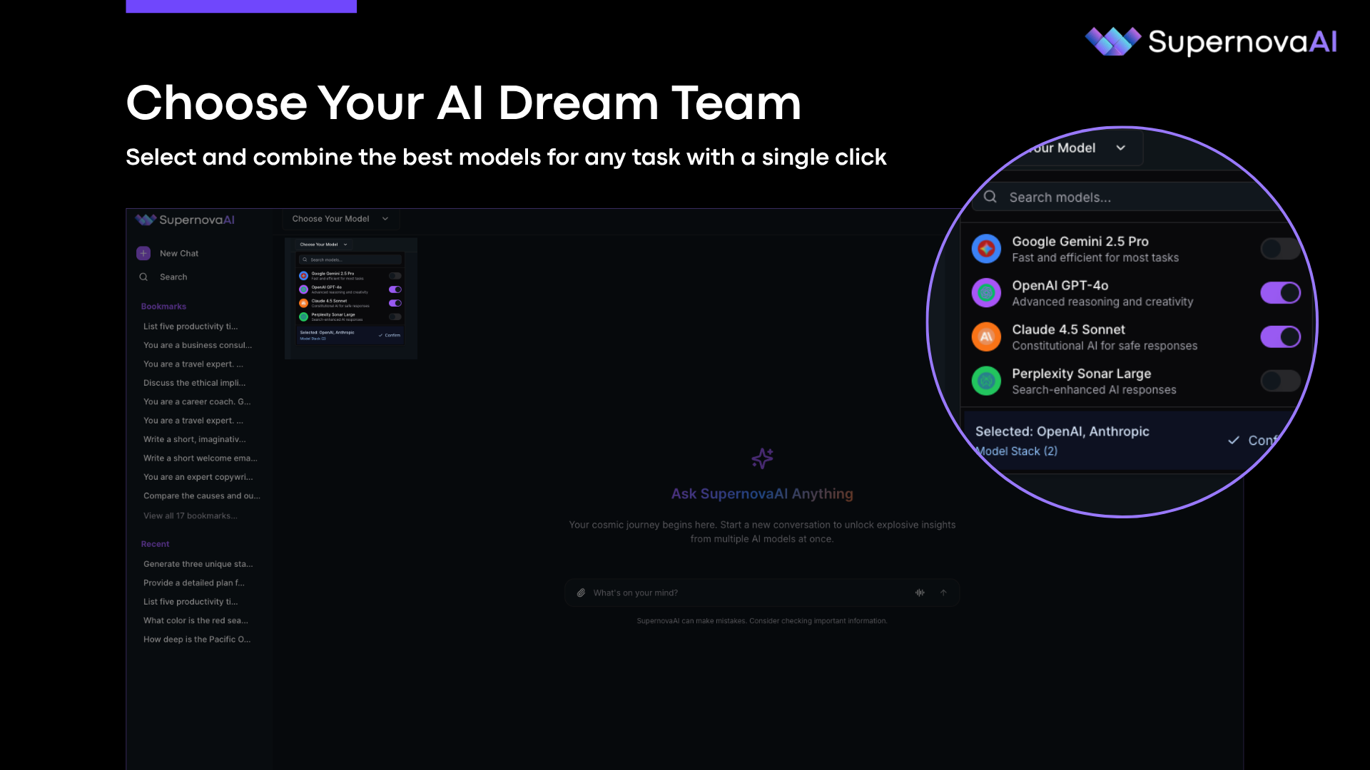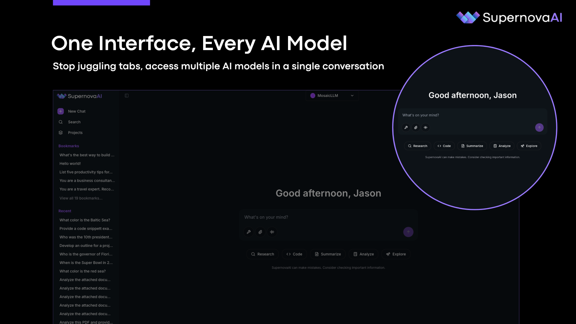 Introducing SupernovaAI - the AI orchestration platform that unifies OpenAI, Claude, Gemini, Perplexity, and others into one seamless user interface.