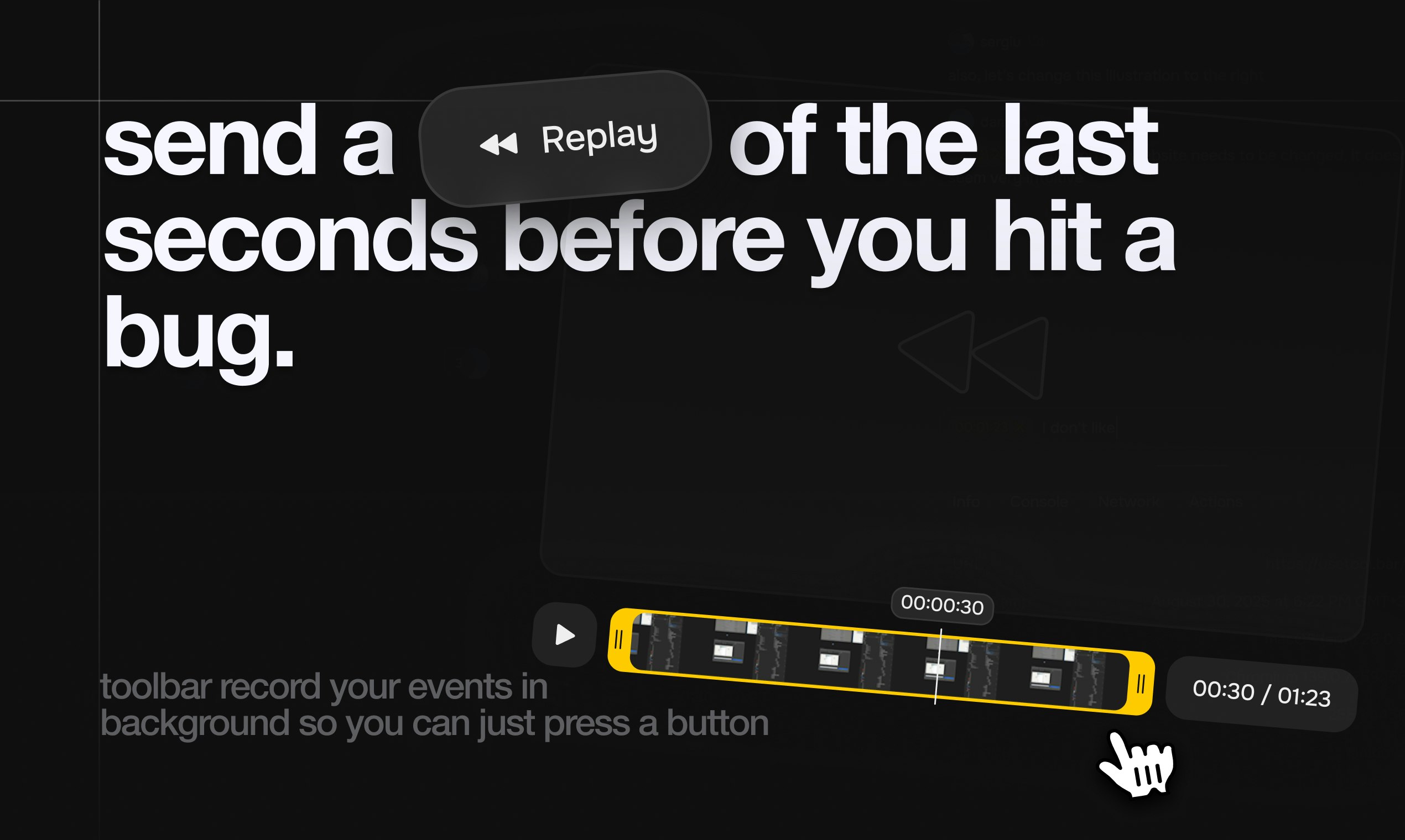 our AI can summarize recordings into clean, ready-to-use tasks, and Replay lets you look back to see what happened before a bug appeared.