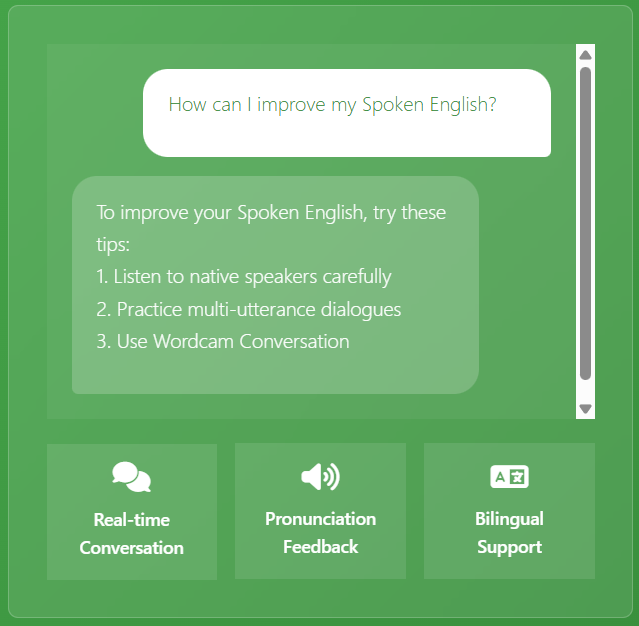 Pelple can practice English conversation skill by asking any question through voice, our product will answer in both English and Chinese, and help chinese people to improve your English conversation pronunciation.